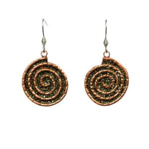 Recycled Copper Origins: Crafted from recycled copper sourced from discarded materials, primarily repurposed from big old copper pipes. Innovative Design: The copper is transformed by cutting along its long side, opening it into a flat sheet, from which a flat coil or spiral is meticulously crafted. Handcrafted Spirals: The flat coil or spiral is intricately formed and soldered onto the sheet, creating a visually stunning and unique pattern. Precision Cutting: Using a saw, each earring is precisely cut along the borders of the spiral, ensuring uniformity and defined edges. Functional Design: A carefully added ring on the top not only enhances the aesthetic but also serves the functional purpose of holding the hypoallergenic stainless-steel hook. Textured Elegance: The spirals and the background are textured using a flat hammer, providing a tactile and visual contrast for enhanced elegance. Matte Finish: The background is purposely textured to achieve a matte finish, creating depth and highlighting the intricate details. Polished Perfection: The pieces undergo a meticulous polishing process, ensuring a smooth and reflective surface that adds to their visual appeal. Pyrite Embellishment: Fine pyrite is meticulously grounded into every spiral, introducing a subtle yet captivating shine, adding a touch of luxury and sophistication. Resilient Coating: To withstand the test of time, the earrings are coated with exceptionally durable resins, ensuring they stay in pristine condition for years. Hypoallergenic Stainless-Steel Hooks: The earrings are thoughtfully completed with hypoallergenic stainless-steel hooks, making them suitable for even the most sensitive ears. |